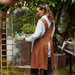 Relaxed cross back slip on apron in stonewashed tobacco color. Made from 100% linen, this easy wearing apron is one size fits all.